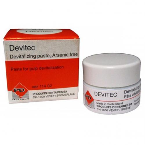 Devitalizing paste without Arsenic should be used when a preparation which does not contain Arsenic is advised. The active ingredient is Polyoxymethylene, a coagulant which acts on albumin and confers the required fibrous consistency to the pulp to facilitate its subsequent extirpation. Lidocaine Hydrochloride is an anæsthetic to relieve pain and calm irritation.