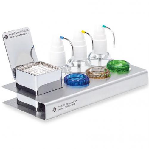 A « Must », this elegant, handy multi-dispenser kit for medicaments, disinfectants or chemical solutions should be a permanent feature on the chairtrays in every dental practice.