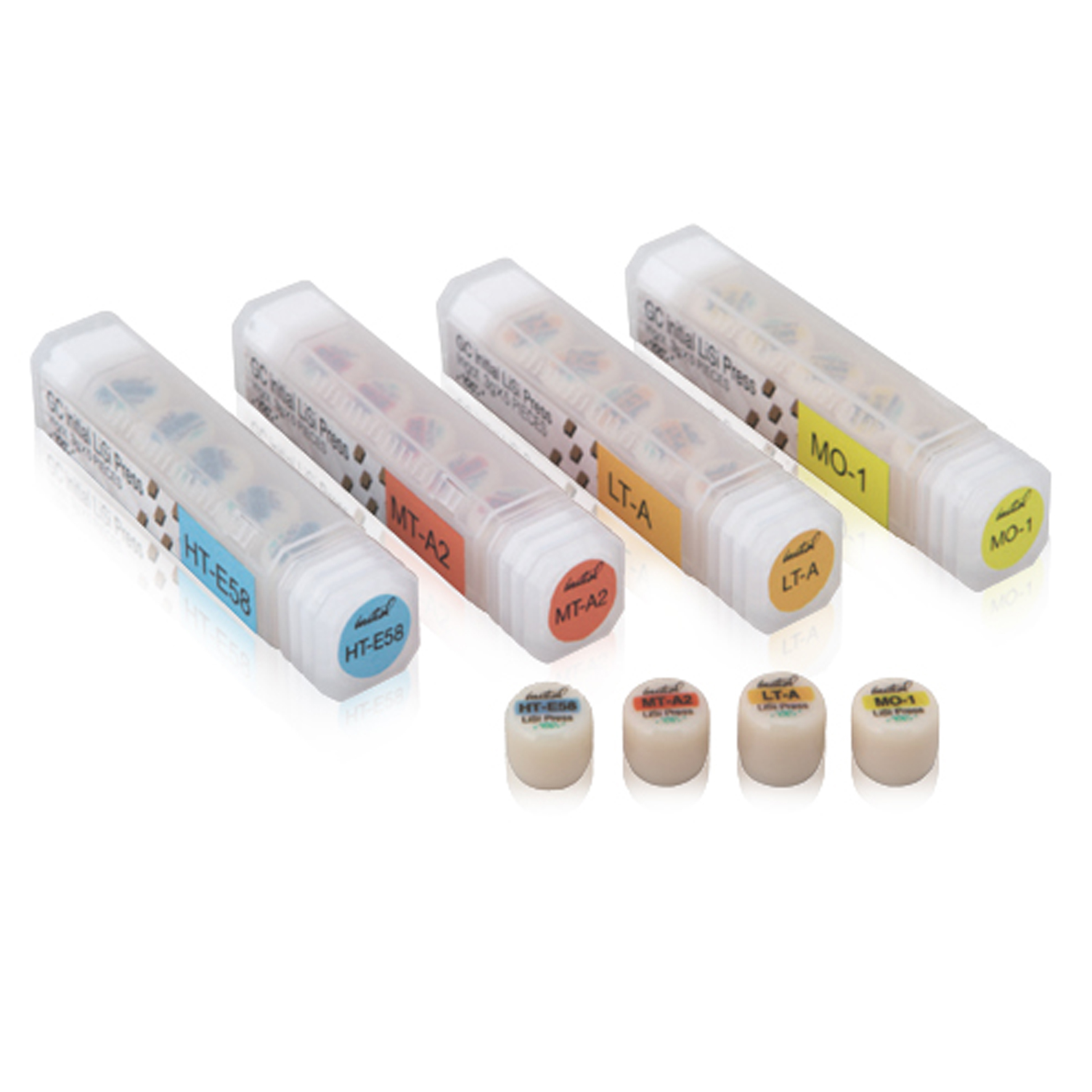 GC Initial LiSi Press is a high-strength lithium disilicate ingot with proprietary HDM (High Density Micronization) technology that equally disperses micro-crystals—rather than traditional larger-size crystals—to fill the entire glass matrix, resulting in excellent physical properties and aesthetics. It has a biaxial flexural strength of >500MPa and virtually no reaction layer when divested. The material is wear resistant, stable after multiple firings and optimized for use with GC Initial® LiSi veneering ceramic and GC Initial® IQ Lustre Pastes NF.