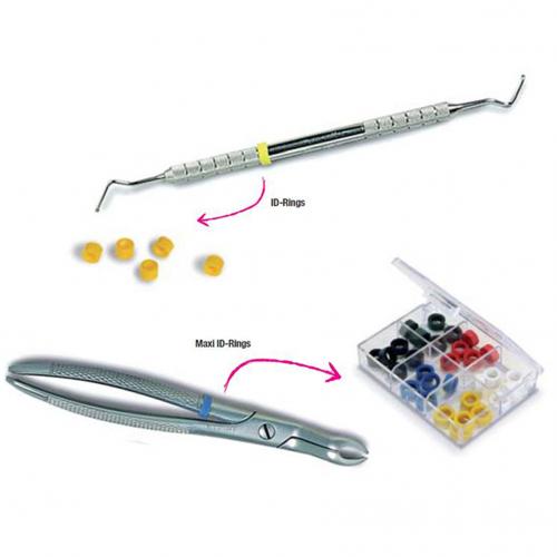 • Maxi ID-Rings size: external diameter 9 mm, internal diameter 6 mm; for the color-coding of instruments with a larger handle diameter (e.g. extracting forceps)