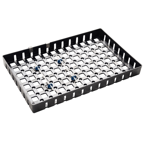 All modules have a universal design with standard dimensions and are not manufacturer specific. They are made of exceptionally durable special plastic which tolerate all common cleaning and sterilisation methods and agents (max 134 °C / 273°F). Modules are sold empty.