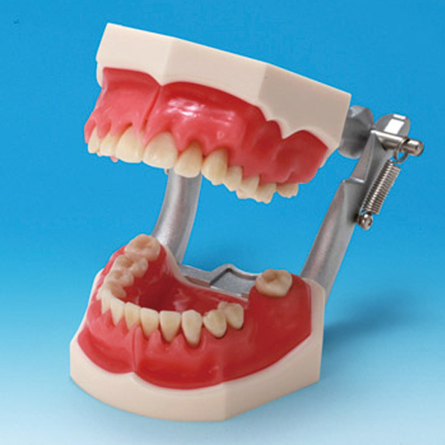 Peelable recessed gingiva allows view of calculus, exposed roots and bone resorption