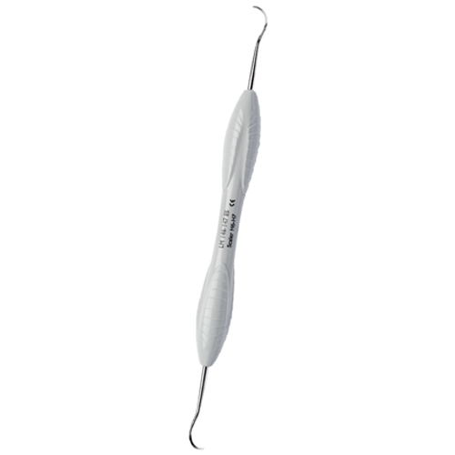 For calculus removal place the tip third of the scaler’s cutting edge against the tooth. Tilt the instrument toward the tooth to achieve 70° to 80° angle between the tooth and the blade. Apply lateral pressure and activate the scaler by using vertical, diagonal or horizontal pull strokes. To maintain control use short 2-3 mm long strokes.